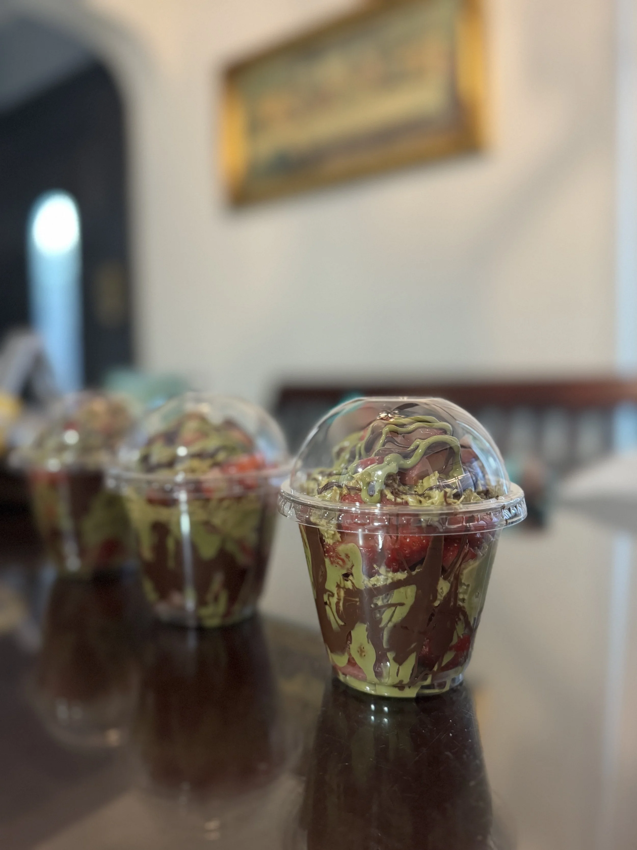 Indulge in luxury with our signature Dubai Strawberry Cup - a sweet treat layered with juicy, fresh strawberries, creamy chocolate, and a drizzle of rich, velvety Dubai - style sauce.